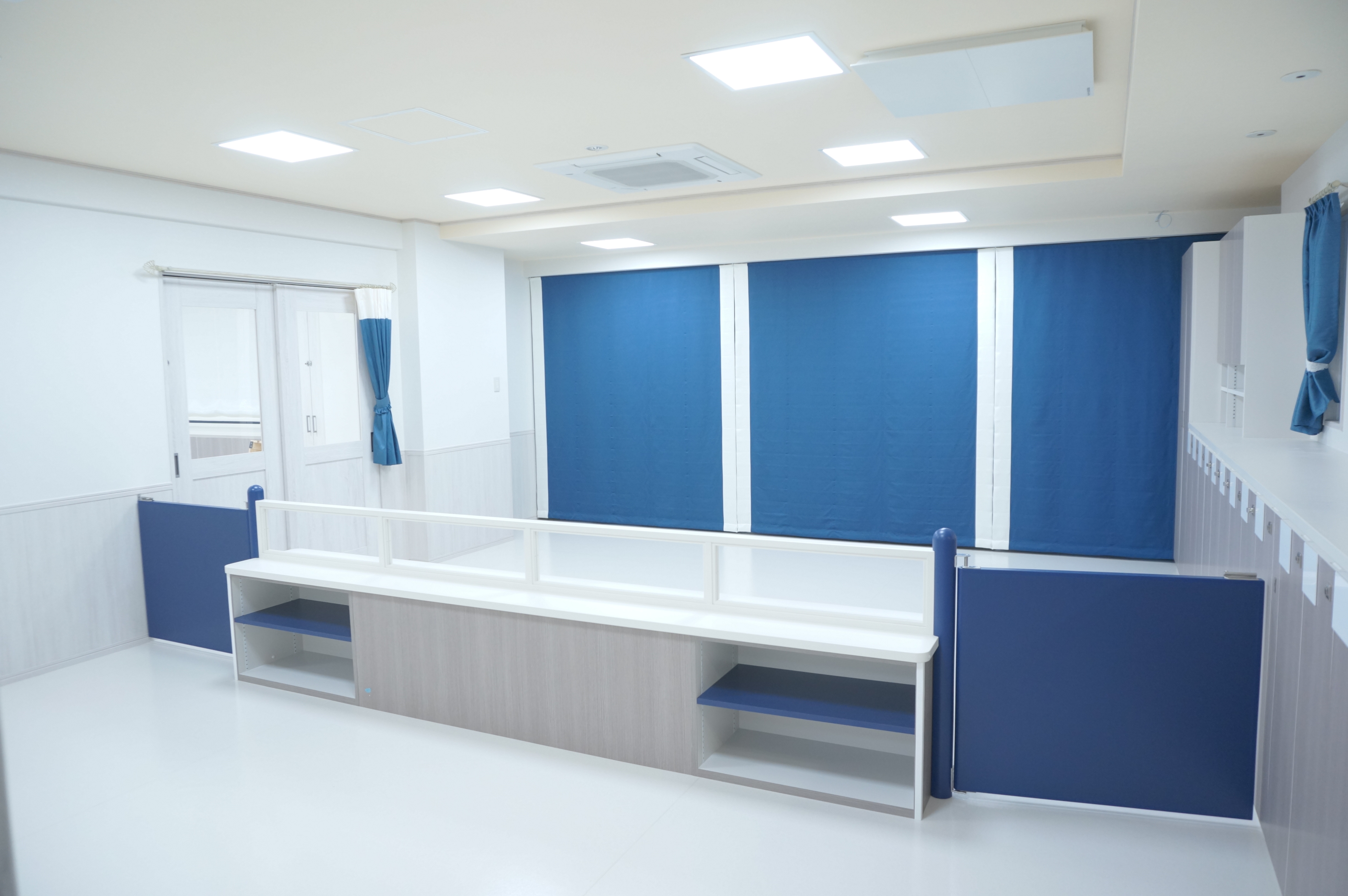 港区高輪に開園した保育園です。内装は、アクセントカラーのブルーを中心にフレンチシックをイメージしています。バルコニー・オーニングも新設。また、長時間床と接することが多い小さなお子様にも安全な水蓄熱床暖房を採用しました。